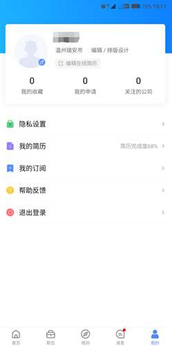 3、所以在这个APP中,我们并不能发布招聘的信息,只能投发自己的简历,找到对应公司的信息。