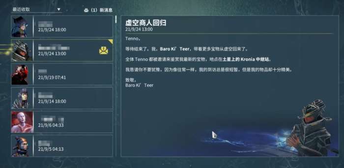 除了依靠地图定位外,还有多种方式可帮助玩家迅速锁定虚空商人的行踪。首先,在他抵达前,系统会通过邮件通知玩家具体的上线时间及所在中继站名称,部分邮件甚至附带一键传送功能,点击即可直达;其次,打开游戏内大地图后,各中继站中央广场会出现明显的商人图标,支持自动导航前往;此外,警报界面也会实时更新他的出现地点,确保玩家不会遗漏每一次交易机会。