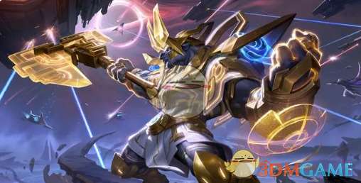 4、2024王者之证皮肤-牛魔星界战将,基于太空科幻的主题,结合金色符文印记、星空和战场废墟等元素进行设计。