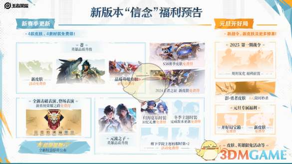 软件提交 专题合集 热门手游王者荣耀于12月17日发布了2025年度版本以及S38赛季度额预告内容,新版本主题是“信念”,升级苍和元流之子,并且会优化对局体验,随着赛季的更新,也给大家播报了众多福利,下面小编整理了《王者荣耀》S38赛季福利前瞻,感兴趣的小伙伴一起看看吧。