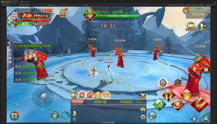 活动开启后,在场景中会刷新元宝财神和修为财神。击杀元宝财神掉落元宝,击杀修为财神掉落修为丹。