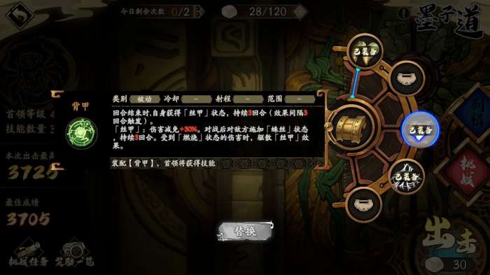 (2)肩甲:boss减伤和辅助技能。减伤+30%,同时为敌人施加“蛛丝”状态。破肩甲的话需要玩家带上能提供“燃烧”buff的角色。