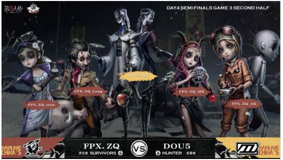 上半场双方2抓2出平局,下半场DOU5战队监管者必须拿到4抓才能获胜,其他结果都为FPX.ZQ战队获得最终胜利。