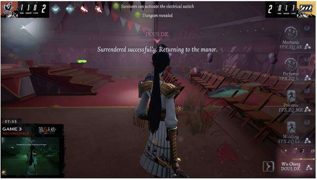 上半场机械师倒地过快,好在守墓人牵制了足够的时间,让求生者能三人存活到开门战;下半场DOU5战队监管者给足了压力,但FPX.ZQ战队求生者牵制了足够的时间同时配合地非常完美,出一个即可的局势也是在祭司出门的那一刻扑灭了监管者所有的希望。