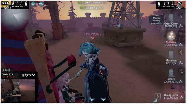 守墓人接大洞,红夫人追击一会后将其击倒。挂上守墓人,场上密码机剩余1台。佣兵抗下一刀救下守墓人,祭司压好密码机,守墓人牵制到佣兵交自起后被击倒。祭司开密码机有些慢,红夫人镜像击倒守墓人,随后传送小门但佣兵护腕弹走,红夫人镜像回到守墓人位置将其挂上,祭司佣兵拉开大门逃脱。