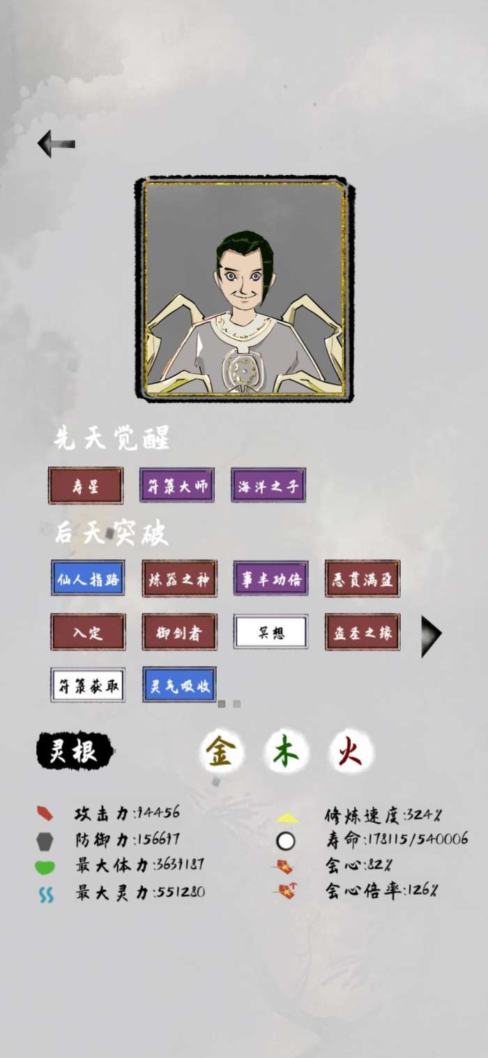 玩了得有半个月了,虽然是时不时玩一两把,始终卡在金仙,总是寿命不足,回来再论坛上看看大佬的攻略丹炉丹体也去尝试了一下,结果没成功,后面就想还是走符路。