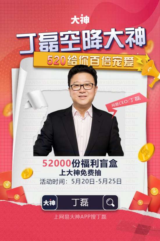 大神宠粉节排面十足!网易CEO丁磊携52000份豪礼空降大神,特设丁磊专场,与大神玩家进行友好对话。