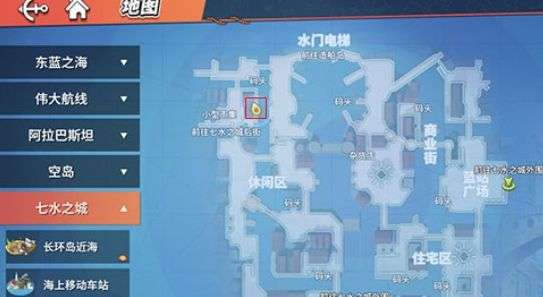 这个位置还是比较难找到到的,因为在地图上并没有直接标注这个餐厅,需要玩家来到七水之城外城区地图的左上角这里,就是在码头、小型集市的这个地方,如图所示。