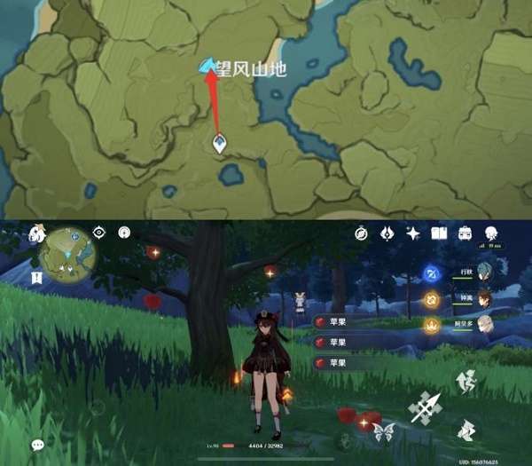 3.从望风山地下方传送点前往,可发现一颗苹果树和地上3个苹果,共可获得苹果*6。