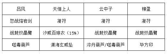 第一回合:云中子打出百转叠浪诀、三清化水符和玄冰化刃符,吕风复制玄冰化刃符并打出,柳盈打出玄冰神破,如果玄冰九变在上方,打出,保留化刃符,如果化刃符在上方,就打出化刃符和玄冰九变。