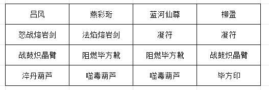 燕彩衔打出焚元蓄威术、焚元蓄力决和战意决,战意决最好在火灵气下打出(4),柳盈打出玄冰神破和化刃符(1),吕风复制化刃符并打出(1),蓝河仙尊打出无相凝水决,柳盈打出玄冰九变,需要蓝河仙尊生2水且化刃符在上方。