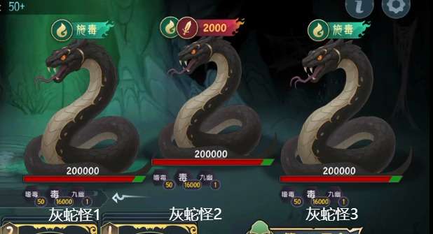 一组蛇全部被消灭后,新出的蛇会重复第一回合行动且伤害和施毒数值翻倍,即2倍、4倍、8倍...