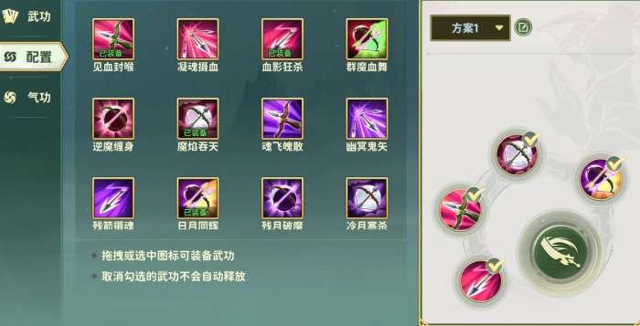 考虑到弓手是远程输出的攻击数值流职业,这我选择一套高输出武功搭配