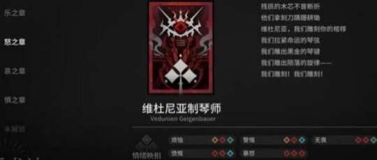 乐音符用黄色表示,怒音符用红色表示,哀音符用蓝色表示,惧音符用绿色表示。