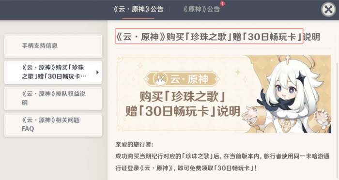 【原神】大月卡赠送云游戏畅玩卡