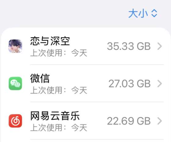 要知道,假如把【恋与深空】剧情全部下载完,再挑几张心选卡面下载约会剧情,零零总总加起来【恋与深空】的包体大小已然来到了35G将近40G,存储空间已然媲美甚至超越微信这个庞然大物。在恋与深空、微信两个大家伙的组合拳下,iPhone孱弱的256G存储直接红色警告。