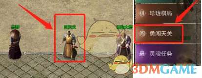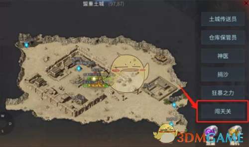 勇闯天关玩法位于盟重土城(97,86),也可以直接点击游戏左侧任务栏“勇闯天关”传送。