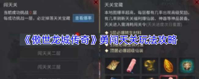 以上就是小编带来的《傲世龙城传奇》勇闯天关玩法攻略,更多相关攻略,请关注pk游戏网。