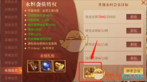 游戏右上角点击“会员”,每日可领取一次闯关令,会员等级越高领取的闯关令越多。