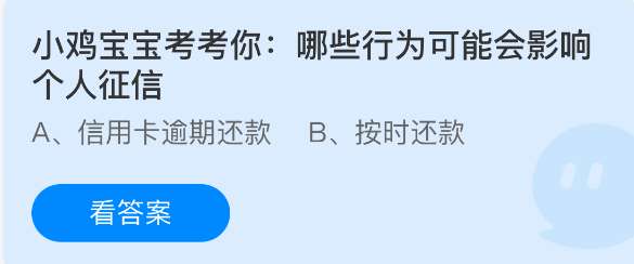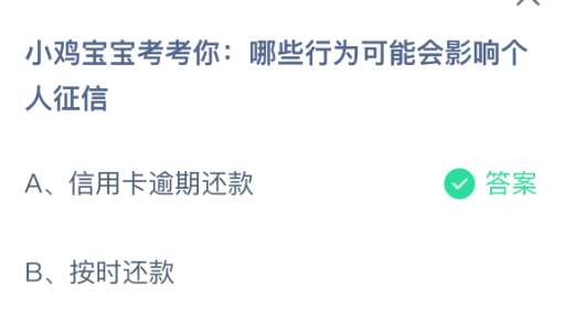 以上就是小鸡宝宝考考你:哪些行为可能会影响个人征信?支付宝蚂蚁庄园2026年1月29日答案最新,更多相关攻略,请关注pk游戏网更新!
