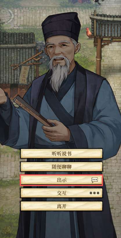 提交方式:在龙岗镇中找到这位【说书人】,并与他对话,在聊天界面中找到右侧类似对话框的图标,这代表剧情道具可以对该NPC使用。