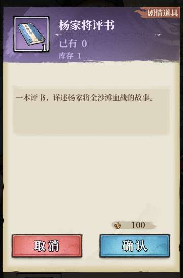 进入购买界面后,除了常规的防具和道具,仔细浏览你会发现一本《杨家将评书》。