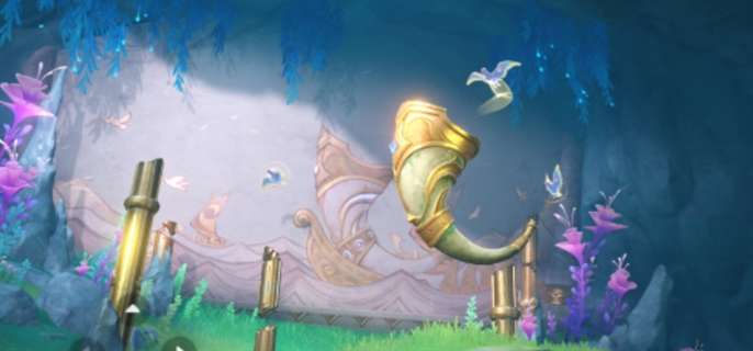 4、就需要我们把图中的号角对准图中的壁画;