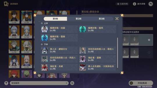 上半层压力较大,但配队相对自由,需要高额输出与生存保障,上半使用携带班尼特的相关配队时,注意三剑鬼和冰风组曲都能打出高额融化反应伤害。