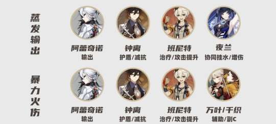 老牌强队,打魔偶剑鬼极度舒适,但注意班尼特大招内火元素附着会与原魔攻击发生融化反应,造成高额伤害。