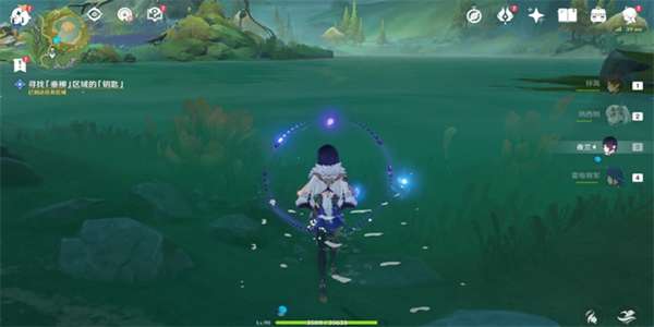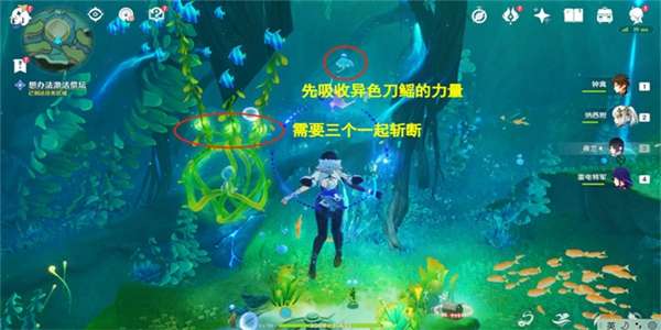 3、接着我们在水下使用异色鳐吸收能力可以斩断水草继续前进。