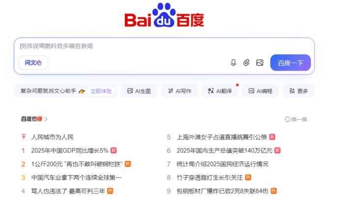 1、通过点击上述的链接即可跳转至百度一下官网首页。