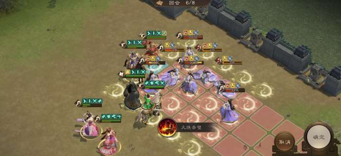 刘备先走到周瑜下面,开大打残血敌人。貂蝉原地放二技能魅惑敌人,被免控了也没关系,主要目的是攒怒气开大。诸葛亮原地放二技能,注意这里不是打到的敌人越多越好,而是要尽可能收掉残血的敌人,所以这里技能落点我选了图五中画圈的格子。接着周瑜走到图六位置,从侧面开大。曹操走到图七位置,刘备上方一格开大。小乔在后面开打给我方回血。千万注意小乔别走的太靠前,敌军的撕裂伤害还是很痛的。
