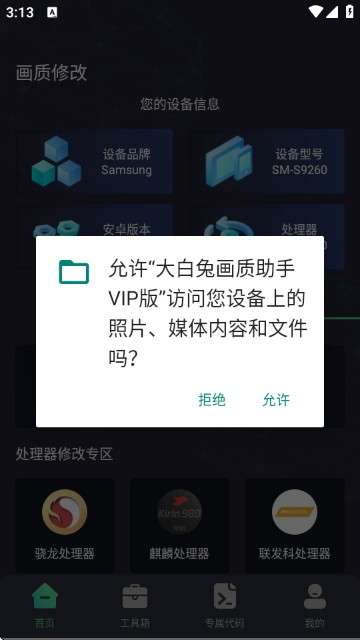 首次使用部分功能时,需允许APP访问设备上的照片、媒体内容和文件,点击“允许”即可继续操作。