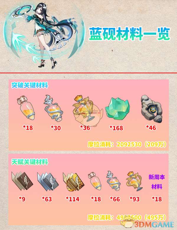 4、蓝砚目前可刷养成材料(蓝砚在下半,其实不用着急刷)