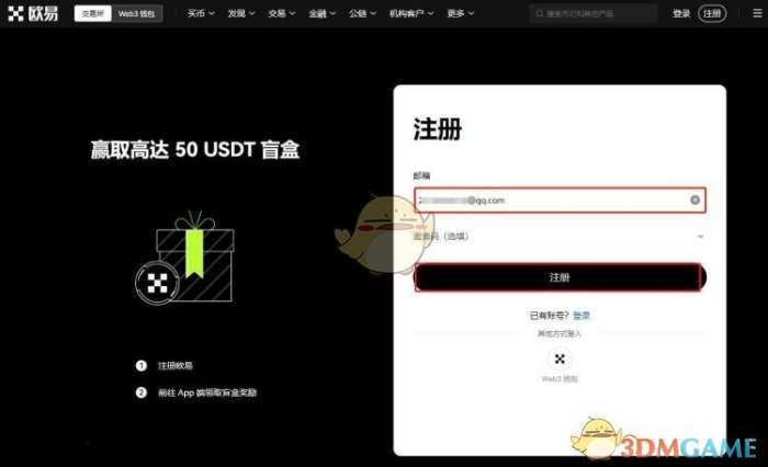 1、打开欧易OKX交易所官网,在首页输入邮箱,点击“注册”,向右滑动滑块,完成拼图进行验证,然后输入邮箱收到的验证码,验证码有效时间为10分钟