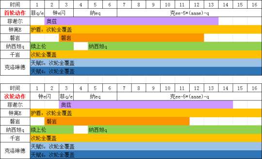 此为首轮角色动作时间、改为钟离e闪-菲谢尔e