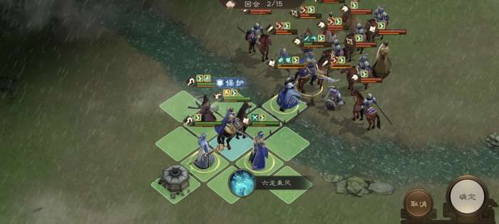 第二回合先让程昱过来落位,貂蝉再动程昱,同时曹操在此位置开buff之后,荀攸aoe奶一口,然后郭嘉程昱两个aoe下去基本上世界就清净了,后面就随便打了。