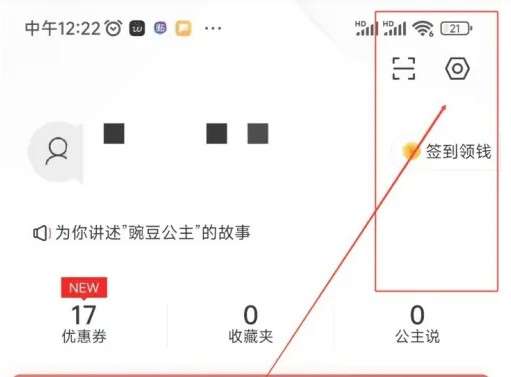 打开豌豆公主App,在主界面点击右下角的“我的”,在我的界面中点击右上角的“设置”