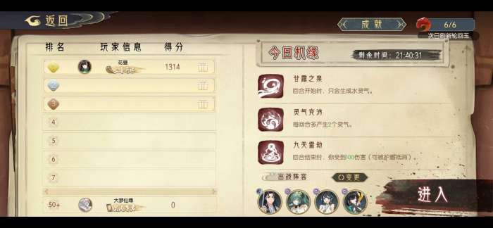 确认队伍以及功法之后我们点击进入,可以看到如下界面。