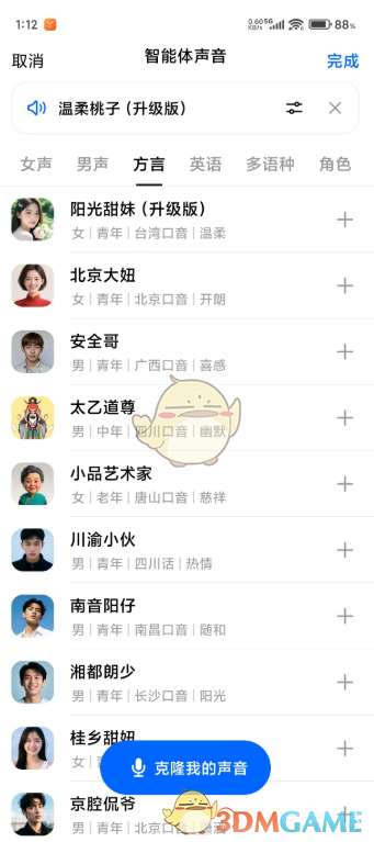 7.自由选择你想要的方言开始使用就可以双方进行方言聊天。