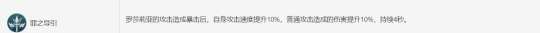 评价:不错的天赋,可惜本帖的燃融配队中,只有罗莎莉亚有输出任务,其他人是偏向于辅助定位,对双暴需求不大,