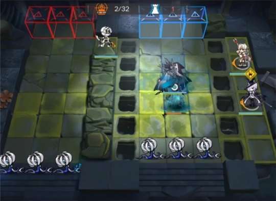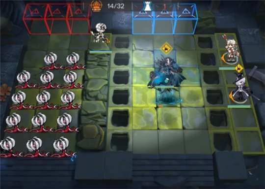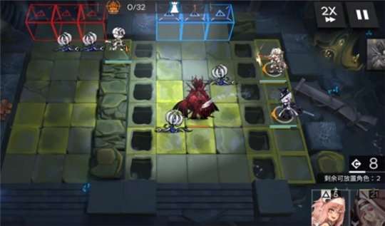 开局的时候玩家可以在右侧向上第三格放置歌蕾蒂娅,冲左侧攻击,先给蝙蝠侠海魔刮痧。