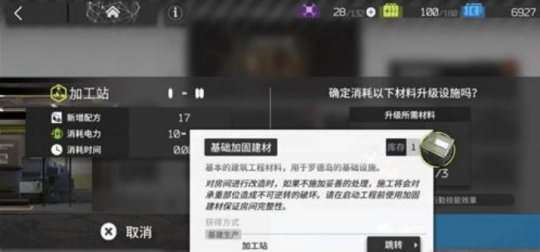 在新手指南中,已经提到了升级整个基建的方法。需要进入建造模式,点击左边的界面,查看有黄色箭头的站点。为了升级整个基建,需要先升级控制中心。升级所需的材料通常是无人机和基础加固建材。完成升级后,就可以开始清理楼下,并升级各种加工站,让自己的基地更加强大。