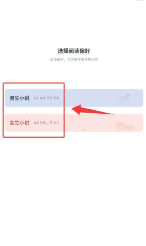 2、进入首页后,可依据偏好点选“男生”或“女生”专属小说分类。