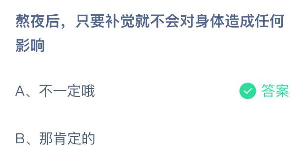 以上就是熬夜后,只要补觉就不会对身体造成任何影响,支付宝蚂蚁庄园2025年12月8日答案最新,更多精彩内容,请点击关注pk游戏网更新!