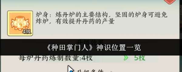 以上就是pk游戏网小编整理带来的种田掌门人神识位置一览,更多相关游戏攻略,请关注pk游戏网!