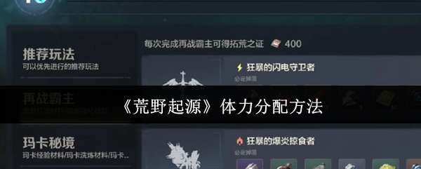 软件提交 专题合集 热门手游荒野起源体力怎么分配?不少玩家在体验荒野起源的过程中,对体力的合理使用感到困惑,不清楚如何最大化利用每日有限的体力资源。小编整理了关于荒野起源体力分配的相关信息,帮助大家更高效地规划每日行动。体力作为荒野起源中角色进行探索、战斗和参与核心玩法的关键资源,其分配策略直接影响角色的成长速度与游戏进度。