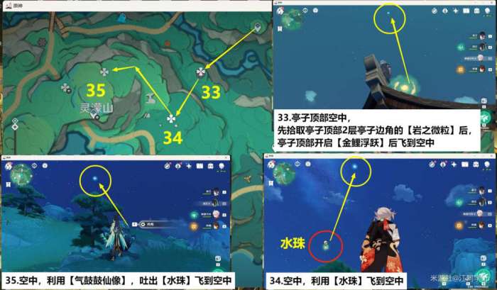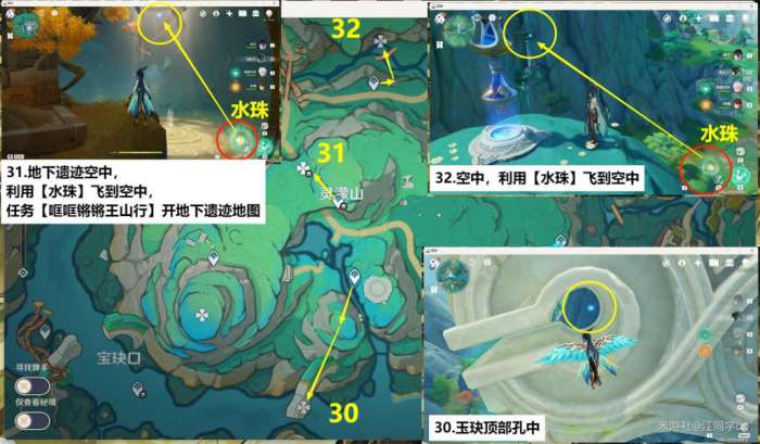 (1)传送过去后,利用左身后头顶的水珠飞到山顶去