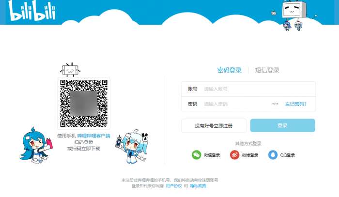 如需直达登录界面,也可在浏览器中输入:https://passport.bilibili.com/login