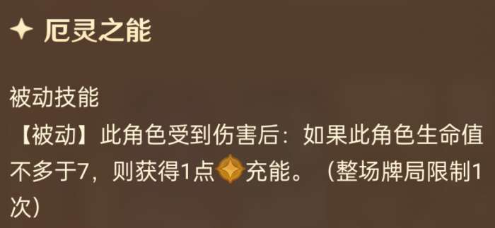 洗三个异色骰,然后获得每回合一次减伤盾,还算是不错的一张天赋,在有减费手段的时候可以带上,卡位紧张就别带了,毕竟女士更倾向于残局再出来或者来挡伤害。